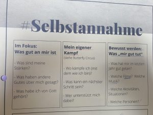 So war der Einstieg schon ziemlich gut gelungen und innerhalb der ersten 2 tage haben wir uns richtig gut kennen und verstehen gelernt. Es war schön, so viele neue Leute von verschiedenen Einsatzstellen kennen zu lernen und zu sehen, wie vielfältig der EC-Verband eigentlich ist. Außerdem war es ein schönes Beieinander und eine gute Gruppenatmosphäre. Also alles in allem war es ein gelungenes Seminar. Daher freuen wir uns schon auf das nächste Seminar.