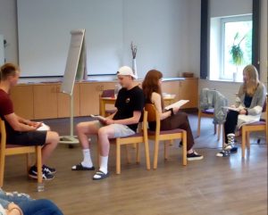 Am Donnerstag neigte sich schon alles dem Ende zu und wir wussten: das ist unser letzter ganzer Tag! Wir genossen ihn. Im Programm stand, dass es um unsere Zukunft geht und Zukunft hat meistens mit Abschied zu tun – etwas altes wird abgeschlossen und ein neuer Weg öffnet sich. Es ging aber auch um ganz viel Papierkram – was wir da wissen und woran wir denken müssen. Dann gab es eine Challenge, bei der wir alle blind durch die Gegend gelaufen sind. Das war eine etwas andere Erfahrung.