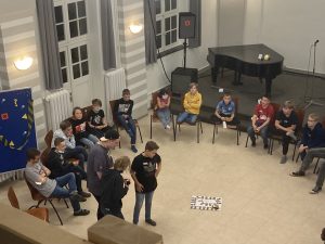 und zwar die Betten beziehen das haben aber alle super geschafft und dann ging es auch schon mit dem Programm los Benny und Lina haben den Eröffnungsabend gestaltet mit Kennenlernspielen und Aktivity. Dann ging es ans bettfertig machen und als alle ihre Schlafanzüge anhatten und mit einem Kuscheltier ausgerüstet waren ging es dann zum Abendabschluss den Benny für uns vorbereitete hatte und danach direkt ins Bett. Am Samstag fing alles mit der Bibelarbeit von Rico und mir an. Es ging um die Stärke von David als er gegen Goliath kämpfte, dann gab es Mittag essen.