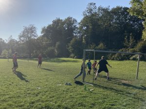 Nach dem Mittagessen gab es freie zeit für die Kinder wo sie auf dem Haus friede Gelände frei rumlaufen und spielen konnten ab 15 Uhr ging es dann mit den Workshops weiter die wir zusammen mit der Teensportfreizeit gemacht haben… es gab Bogenschießen, Basteln, Menschenkicker und Beutel bemalen als Auswahl. Abends gab es einen Spannenden Krimiabend wo wir einfach nur froh darüber waren das die Kinder da waren und uns geholfen haben den Täter zu entlarven. Die Ingeborg van Duden kam uns nicht ungeschoren davon. Dann kam es wieder ans fertig machen und es ging wieder zum Abendabschluss, diesmal von derLina. Danach gab es noch eine runde in der jeder sein Tageshighlight mitteilen konnte -das Bogenschießen und Menschenkicker spielen war wohl das beste.